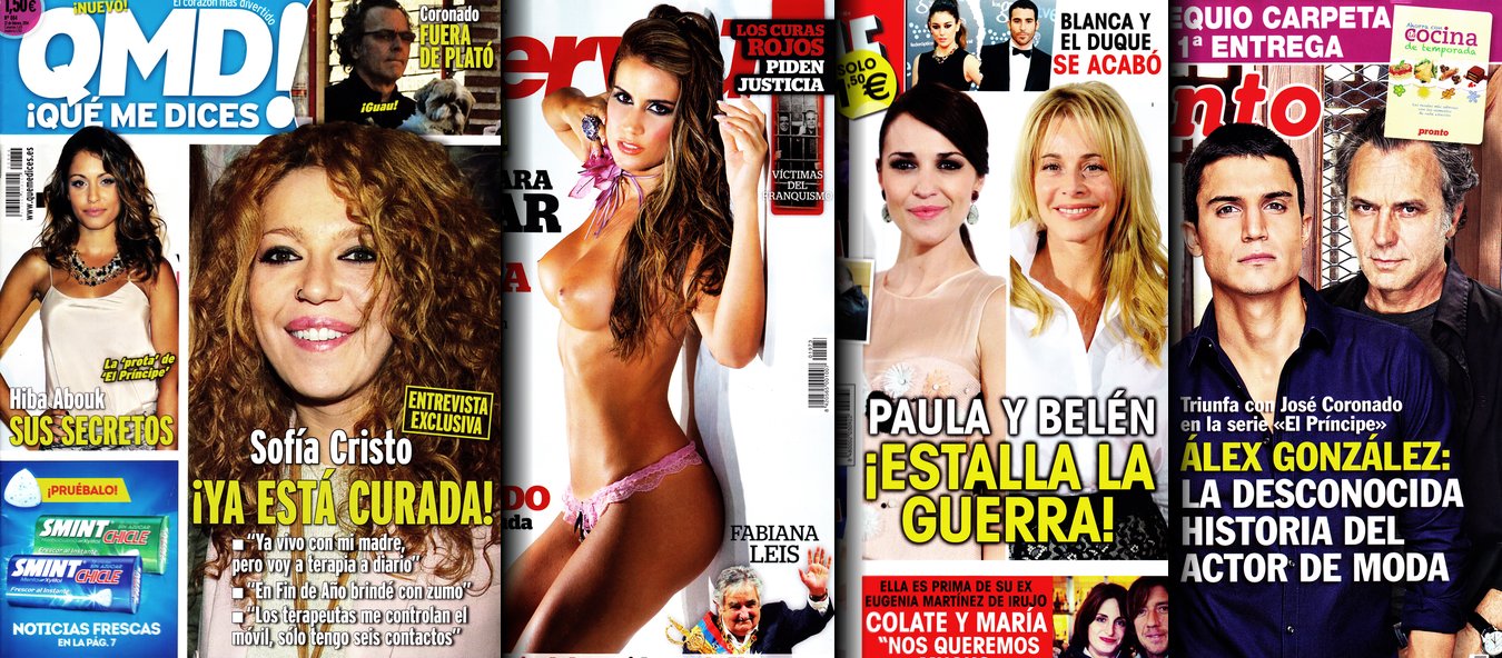Portadas de las revistas QMD, Interviú, Sálvame y Pronto.