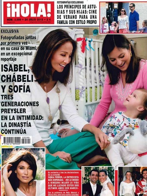 Chábeli, su hija mayor, le hizo abuela, una palabra que contrasta con su figura y imagen de eterna juventud, aunque tiene ya 63 años. Las tres generaciones, Isabel, Chábeli y la pequeña Sofía, posaron juntas en la revista de cabecera de la familia este verano.