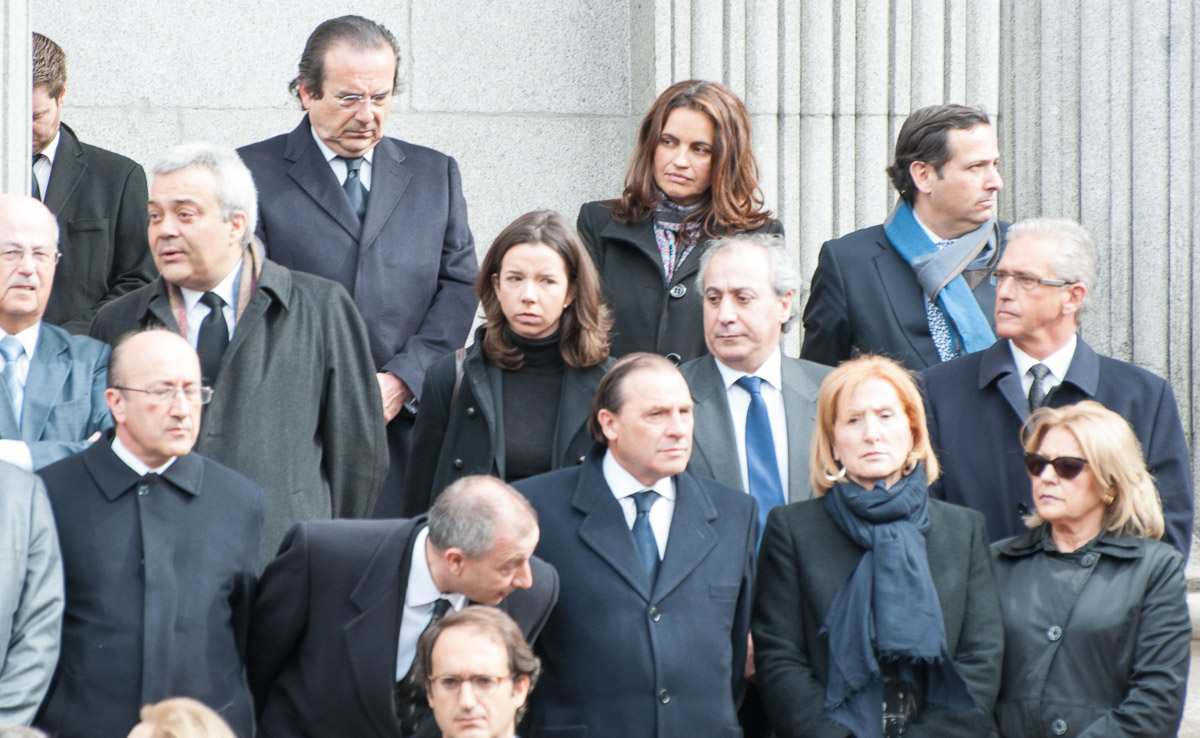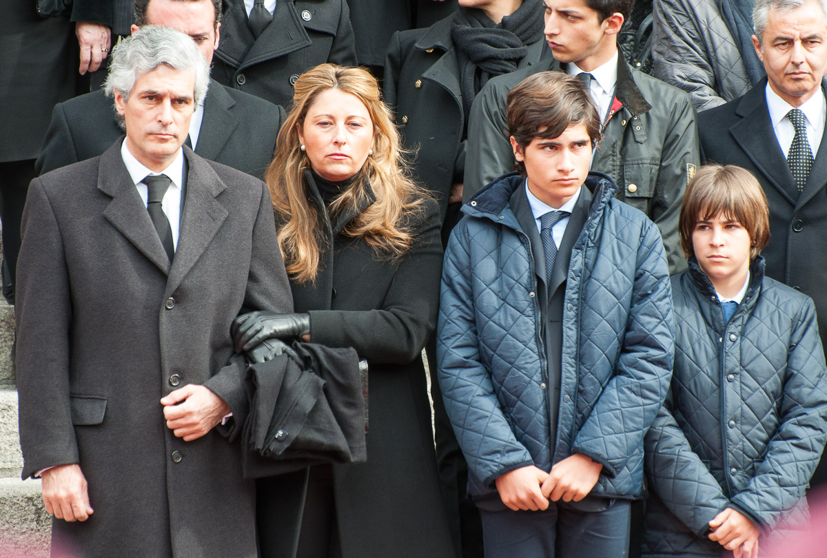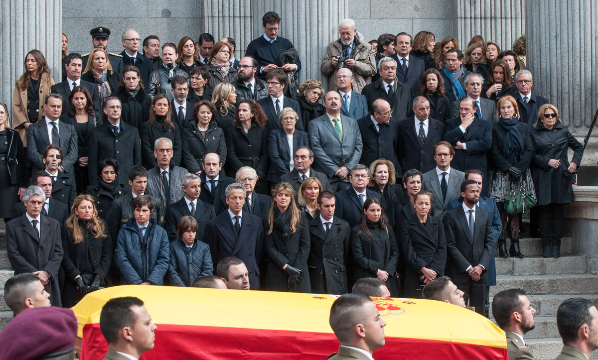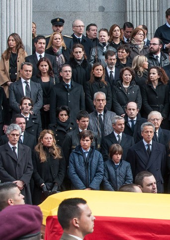 Hijos y nietos del expresidente Suárez ven pasar el féretro con sus restos mortales, cubierto con la bandera de España
