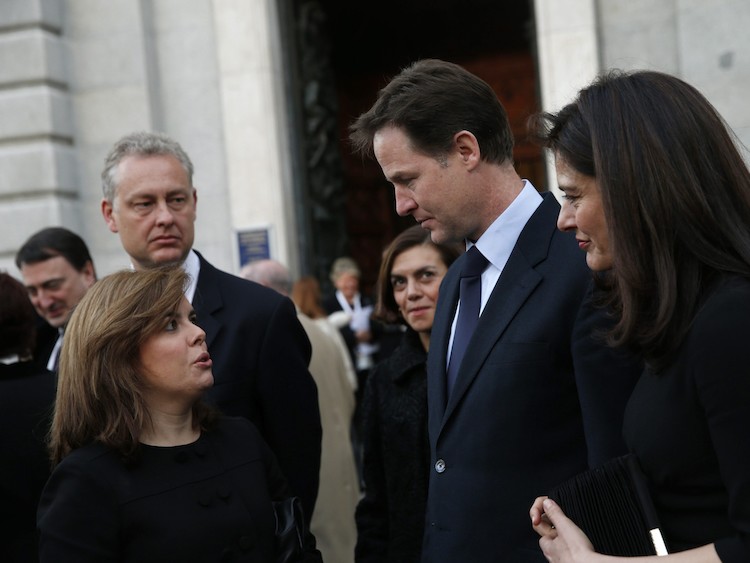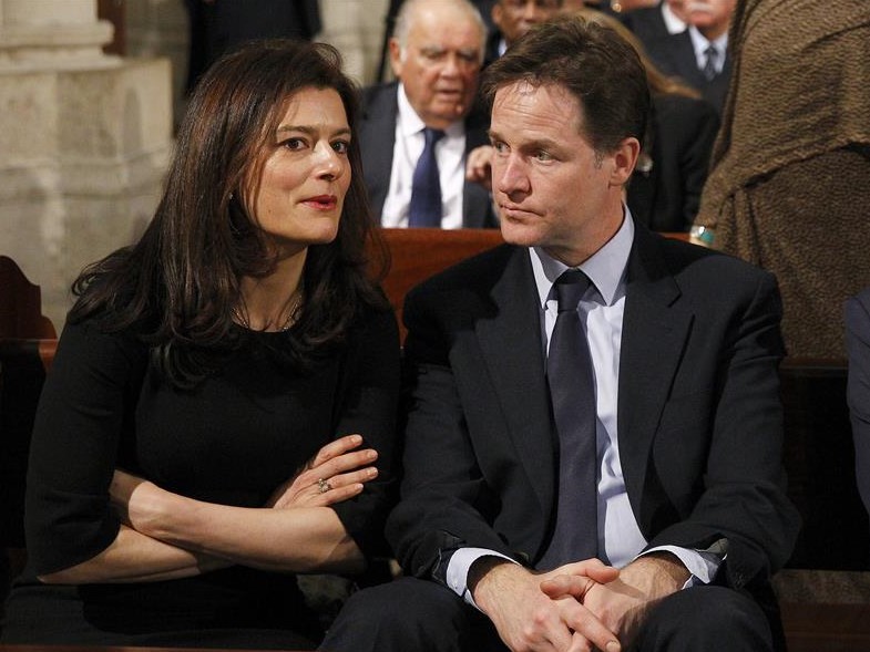 El viceprimer ministro británico, Nick Clegg, y su esposa Miriam González, durante el funeral.