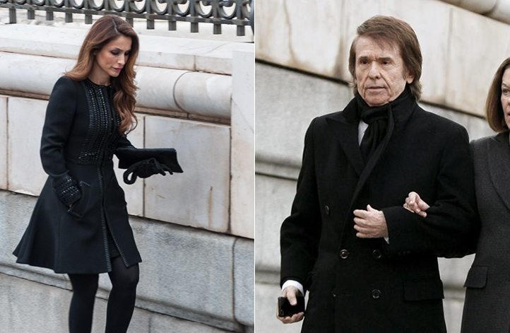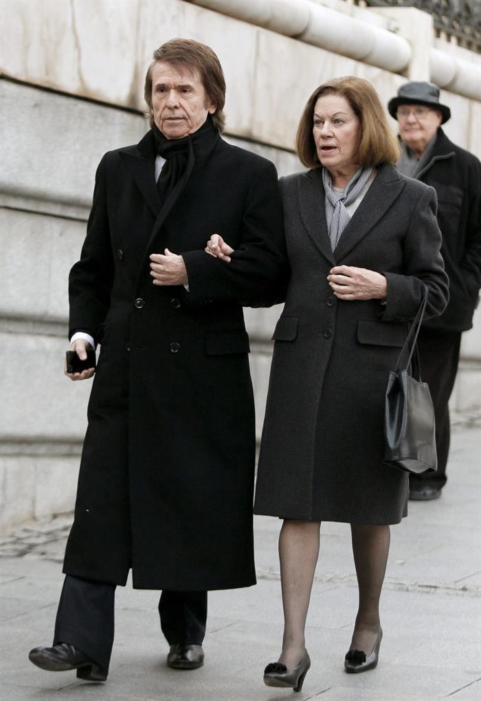 El cantante Raphael junto a su esposa, Natalia Figueroa tras asistir al funeral.