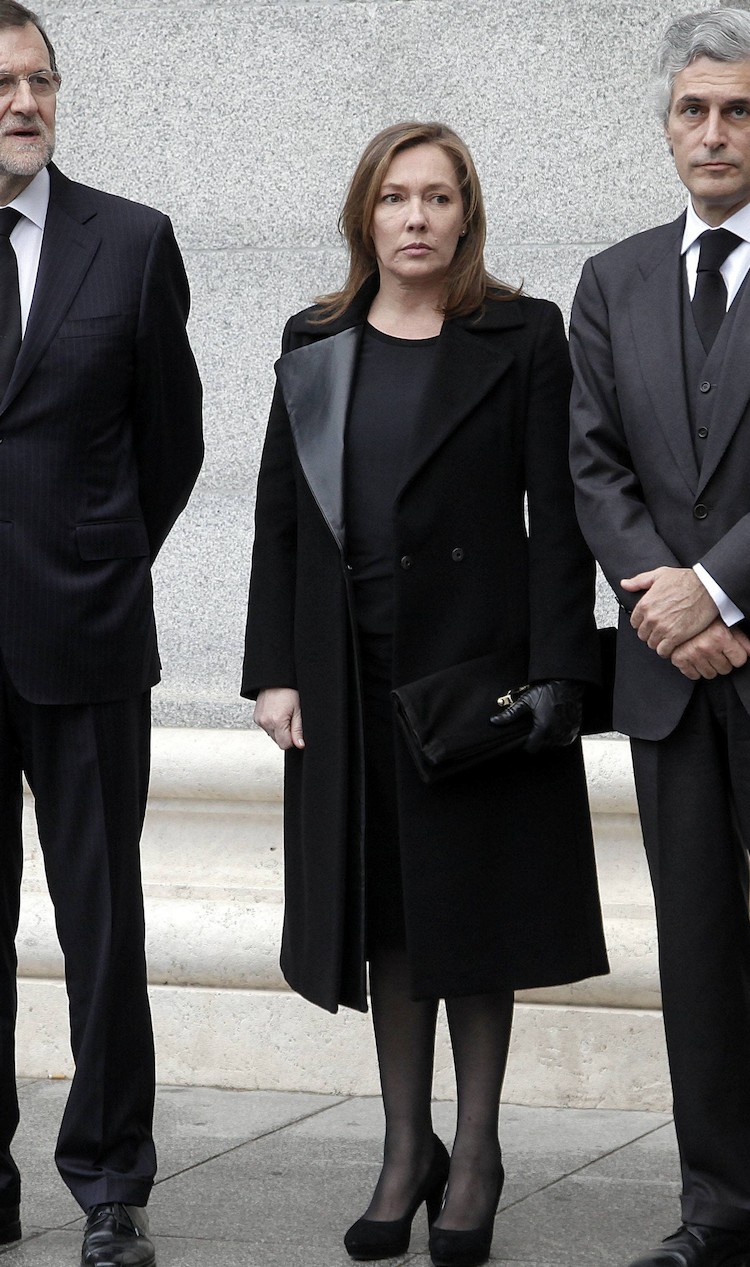 Elvira Fernández ha estado presente en todas las ceremonias de despedida a Adolfo Suárez. La mujer de Rajoy, extremadamente discreta, administra mucho sus apariciones públicas. En esta ocasión, vistió de riguroso luto.