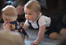 El pequeño de ocho meses acaparó todas las miradas mientras jugaba con otros bebés, aunque no se alejó mucho de su madre.