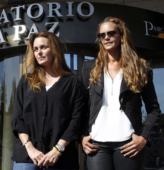 Carmen y Shaila, las hijas de Junior, atendiendo a los medios a las puertas del tanatorio.