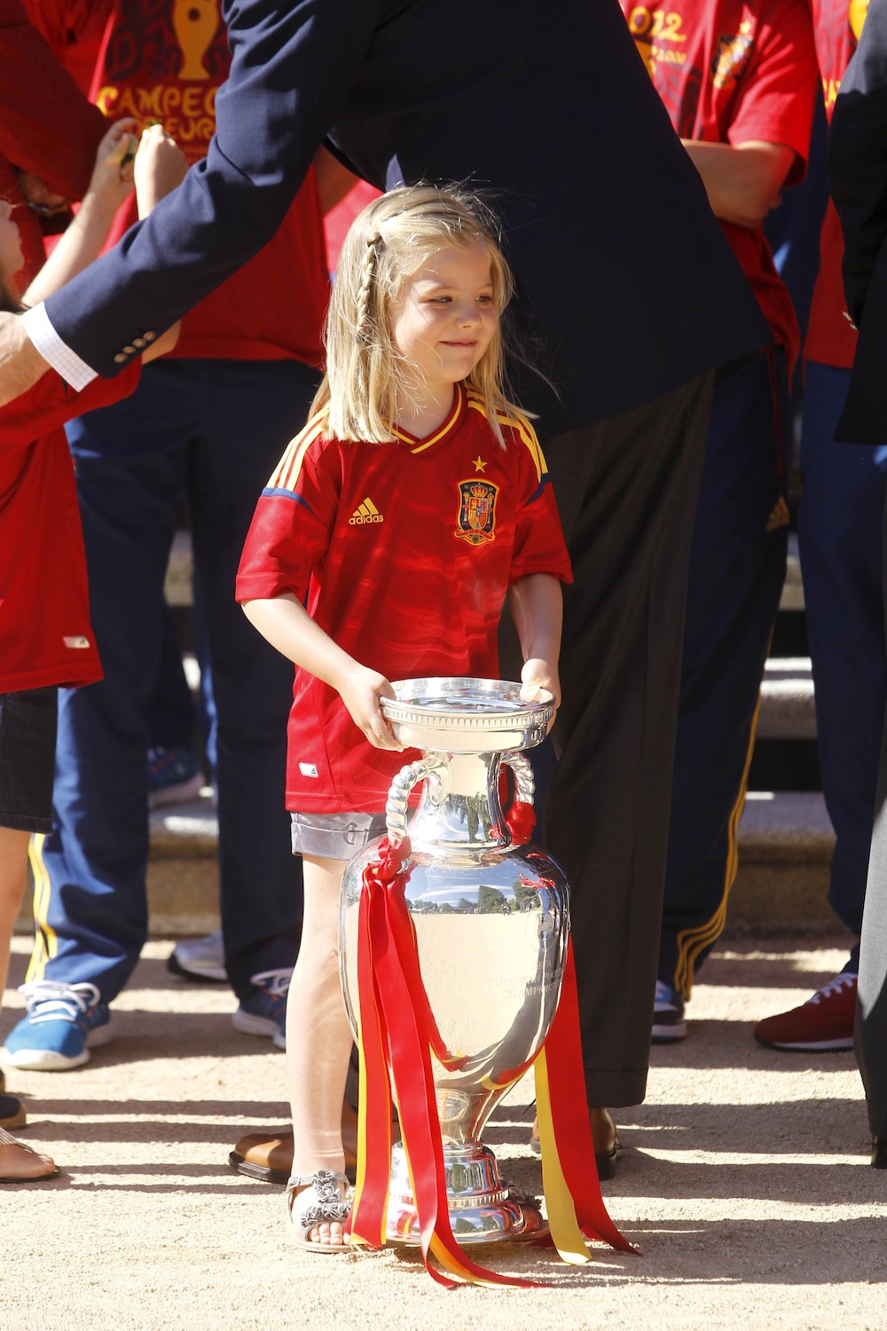 Sofía y su hermana Leonor estuvieron apoyando a la Selección España durante el Mundial. También felicitaron al equipo cuando los Reyes y príncipes de Asturias les estregaron la Copa Mundial de Fútbol 2010.