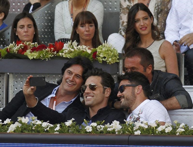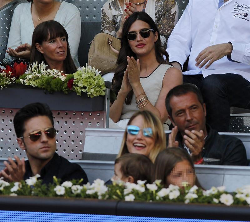 Arriba, Sara Carbonero, que no dejó de animar a su chico. Abajo, David Bustamente, Alba Carrillo y el periodista deportivo Manu Carreño
