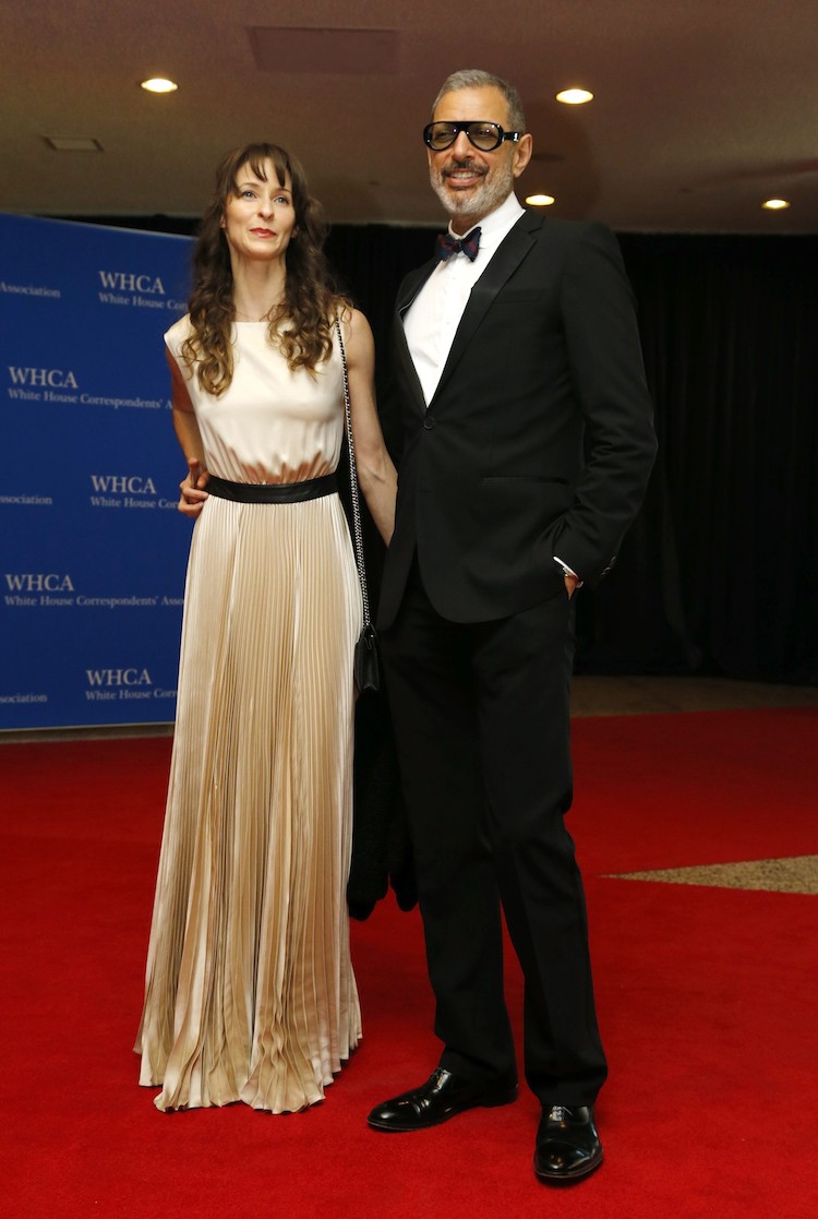 El actor Jeff Goldblum y Emilie Livingstone en la alfombra roja. En la cena, Obama aprovechó para lanzar dardos contra los republicanos y el canal televisivo Fox, uno de sus más férreos opositores. "Deben aceptarlo en Fox. Me echarán de menos. Será mucho más difícil convencer a los estadounidense que Hillary Clinton nació en Kenia", dijo Obama ante las risas de la selecta audiencia compuesta por periodistas, celebridades e influyentes personalidades de EE.UU.