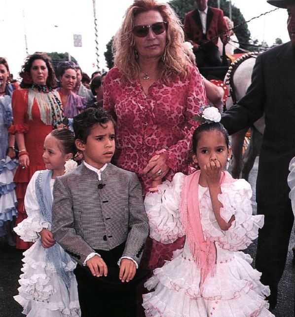 En 2001 Rocío Jurado aparecía muy casual en la Feria, en contraste con el look totalmente tradicional de sus hijo y su nieta. ¿Qué decir de cómo se han desarrollado los acontecimientos desde la muerte de la artista? Rocío, la nieta que en la foto mira para otro lado, actualmente no se habla con su madre pero sí mantiene una buena relación con Gloria Camila, que aquí se chupa un dedo ajena a los problemas que le esperan a su hermano, vestido de corto.