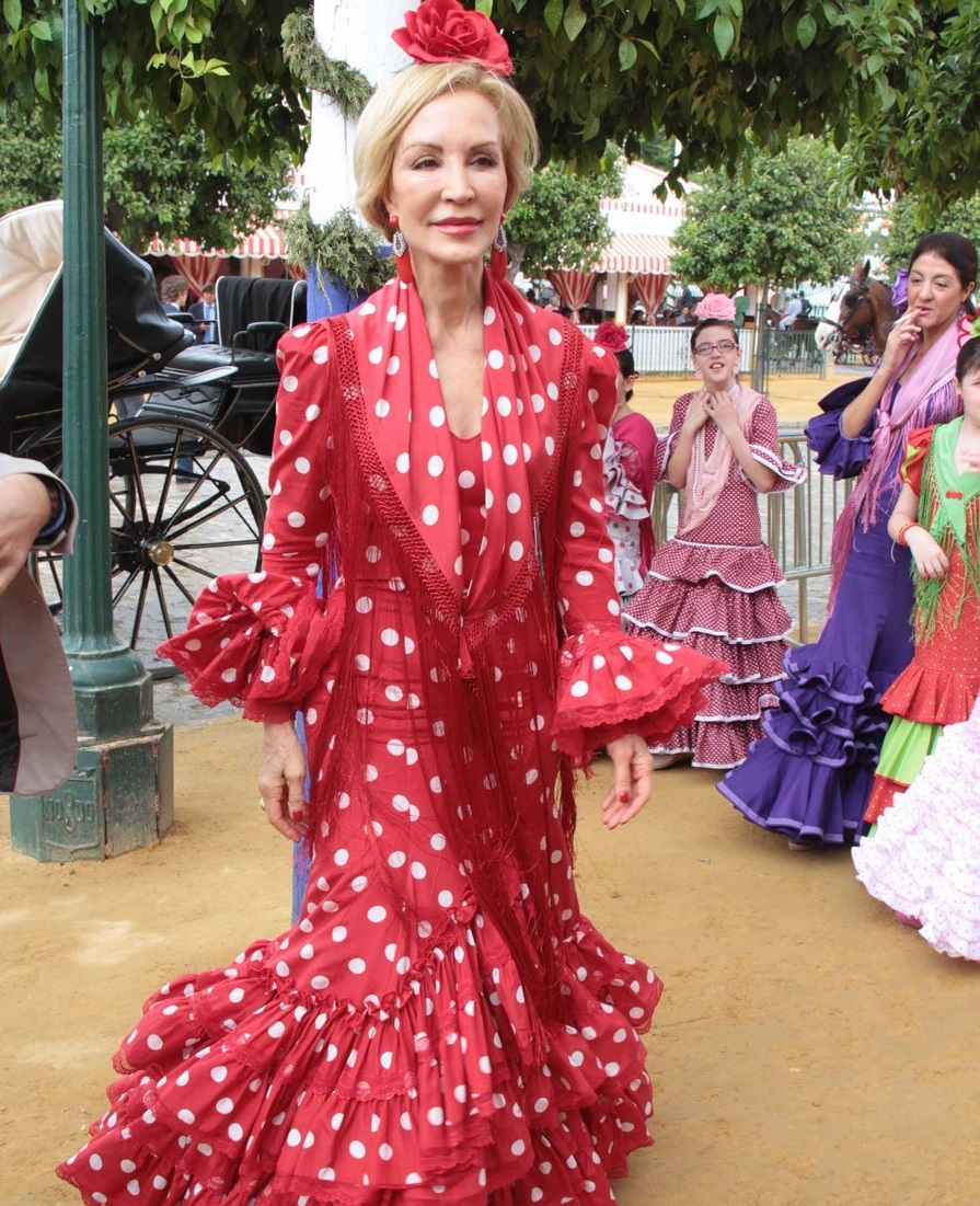 La reina de la televisión, Ana Rosa Quintana, es una enamorada de Sevilla y de la Feria, a la que acude cada año junto a su marido Juan Muñoz.