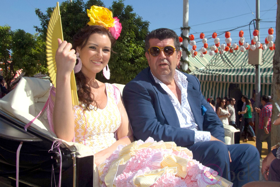 La Miss España 2004 María Jesús Gil ha sido un filón para las revistas del corazón. Sus declaraciones, sus romances, su madre… y su romance con José María Gil Salgado, empresario que fue presidente del Club deportivo Jérez. El año pasado casi acaban a golpes en plena Feria las exmiss y la hija del caballero, al que vemos paseando en calesa con su novia y un look difícil de definir.