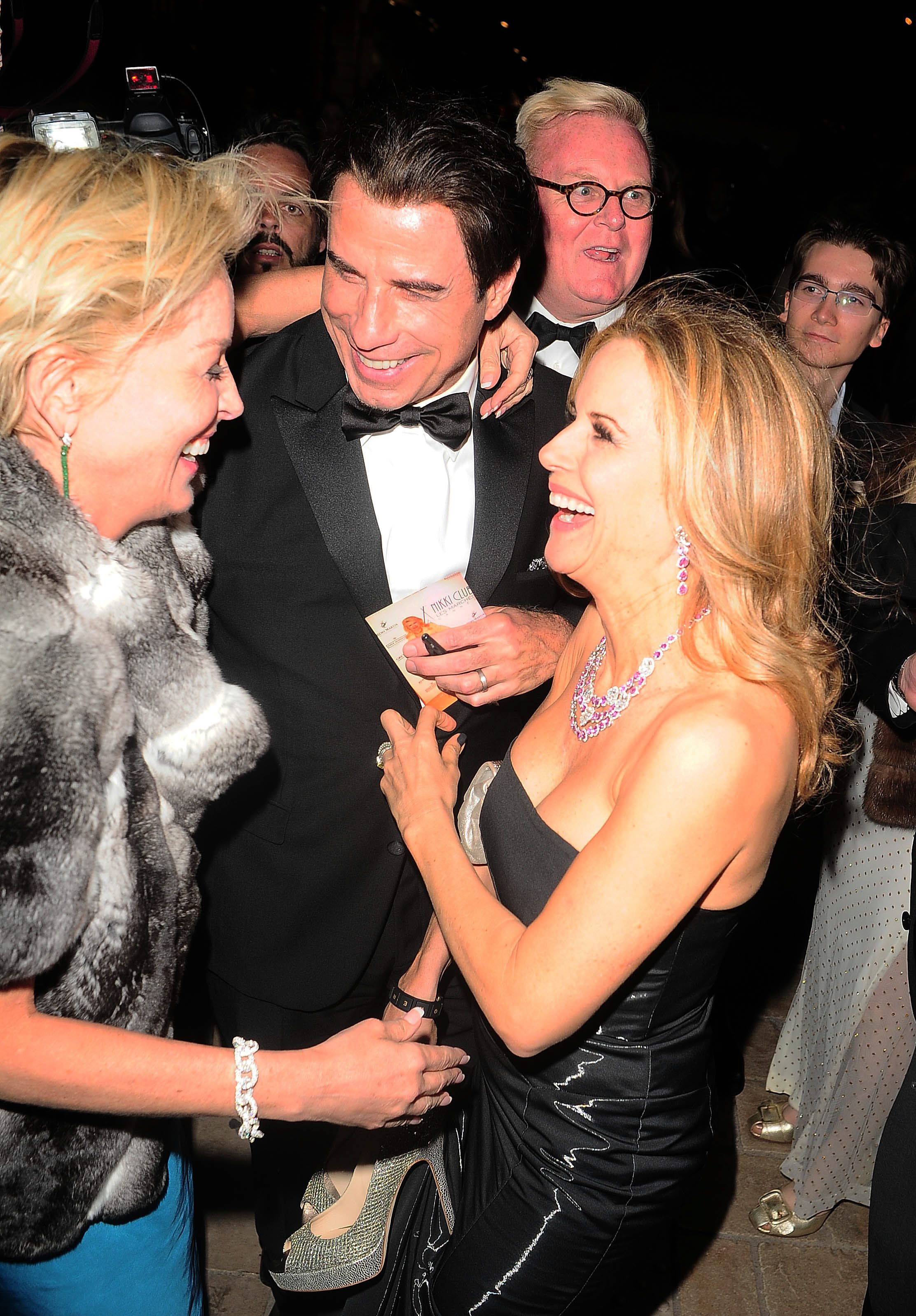 El actor John Travolta, bien rodeado por su mujer Kelly Preston y la actriz Sharon Stone, a la izquierda de la imagen.