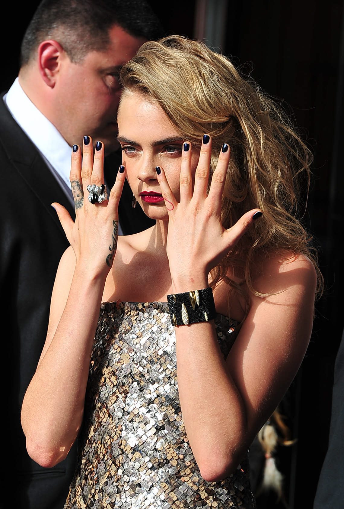 Cara Delevingne, actual pareja de la actriz Michelle Rodriguez, tan original y juguetona como de costumbre.