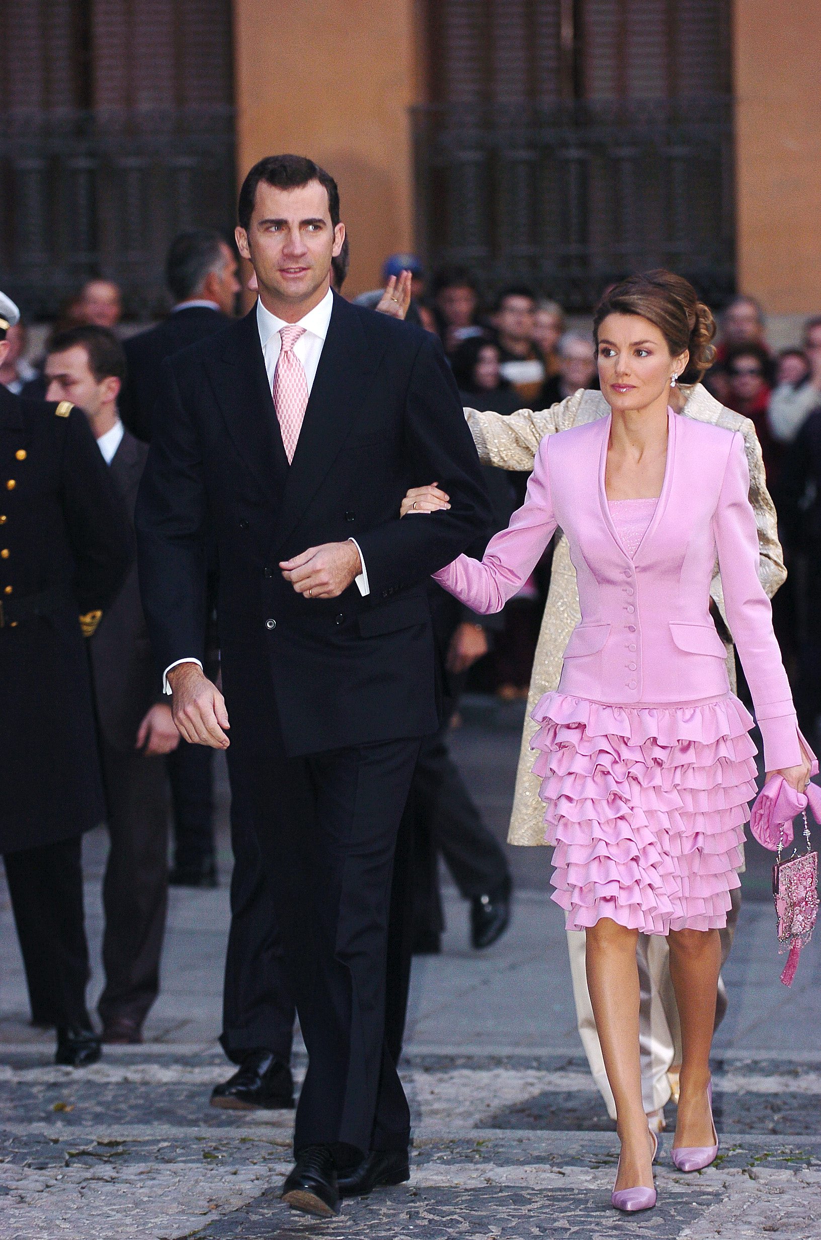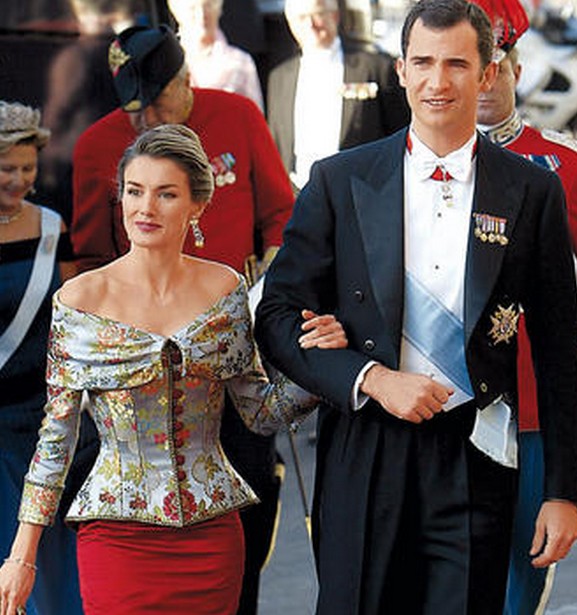 Letizia impresionó y mucho en la cena de gala previa al enlace entre Guillermo Mary de Dinamarca. Fue su presentación ante la realeza cuando aún no era princesa de Asturias. Un Lorenzo Caprile de dos piezas compuesto por una chaqueta encorsetada con amplio escote barco, brocados de seda y una falda de color rojo guinda