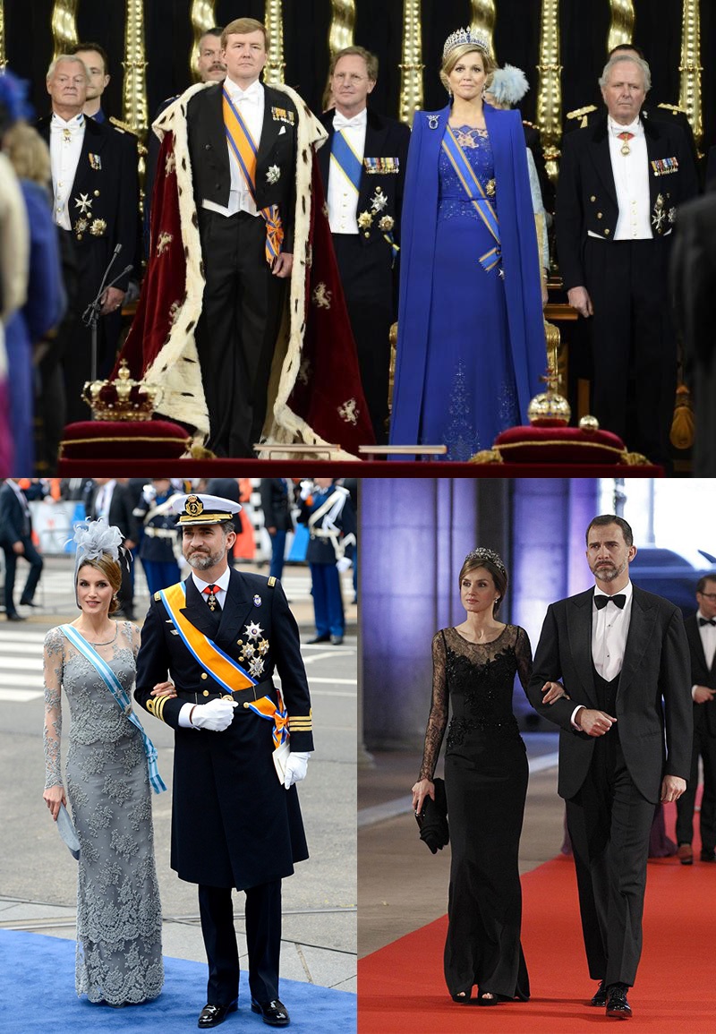 No era una boda real, pero sí una cita de gran importancia: la coronación de Guillermo y Máxima de Holanda. Y Letizia lució sus mejores galas en la cena previa. La princesa de Asturias deslumbró con este vestido tubo en seda y encaje de chantilly negro, bordado con flores azabache negras en el cuerpo, de manga larga y transparencias en el escote y las mangas