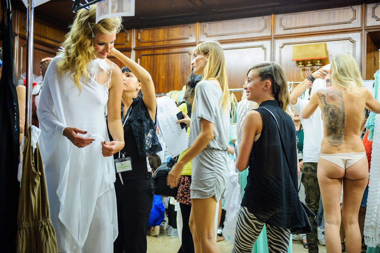 El backstage de la pasarela nos deja imágenes de trabajo como esta.