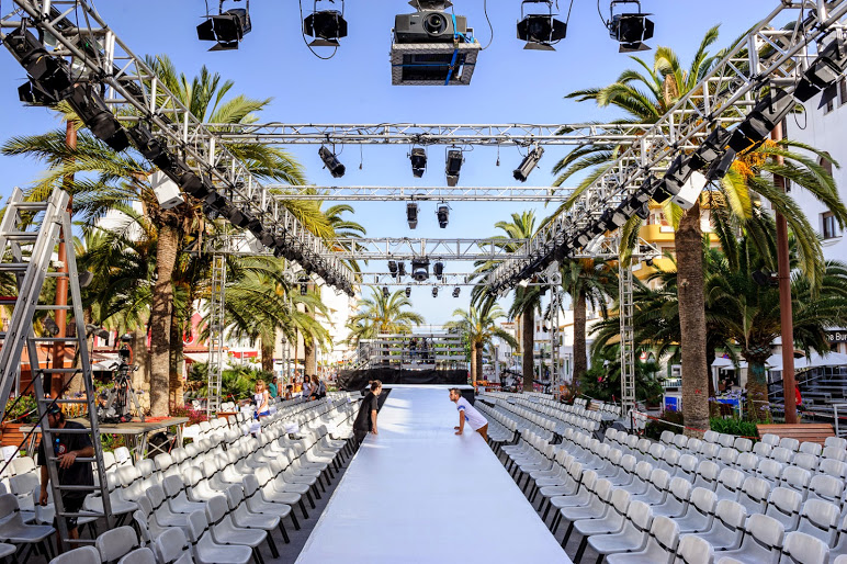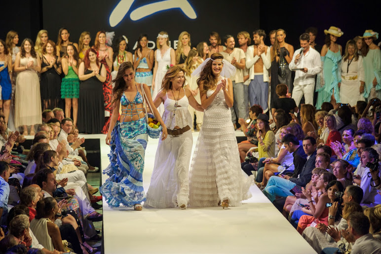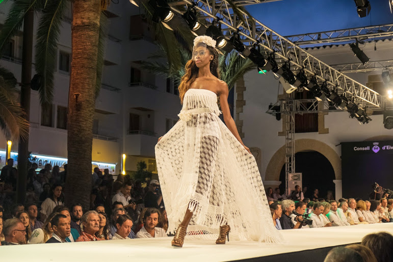 Junto al presentador Jaime Cantizano, los dos sirvieron de gancho para esta nueva edición del festival de moda ibicenco.
