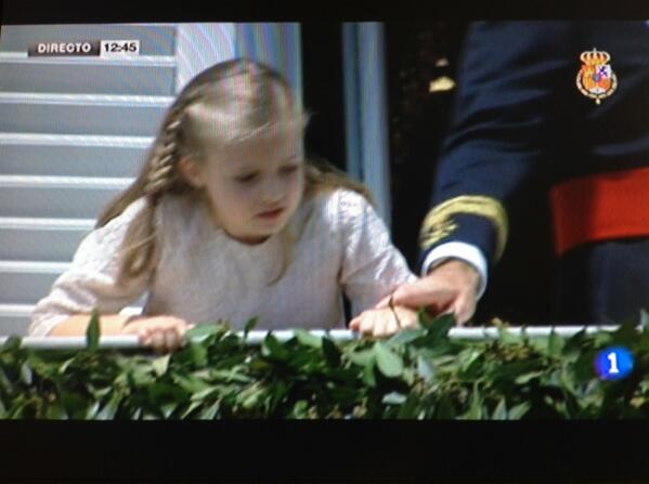 Leonor, muy curiosa, quiso asomarse demasiado al balcón del Palacio de Oriente. Felipe le cogía de la mano.