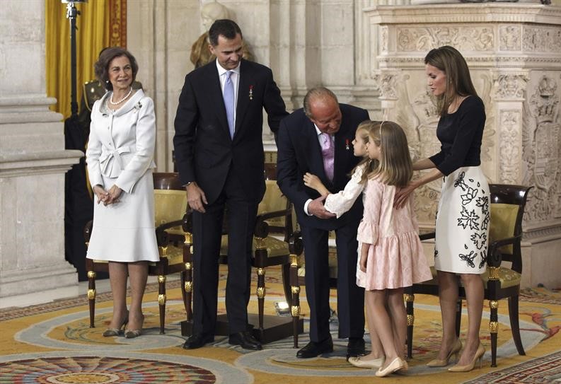 La infanta Leonor saluda a su abuela Sofía, todavía Reina, en la abdicación del miércoles.
