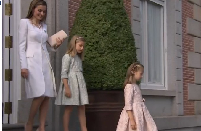 La infantas y la Reina Letizia, a su salida de Zarzuela para iniciar el recorrido en coche hasta el Congreso.