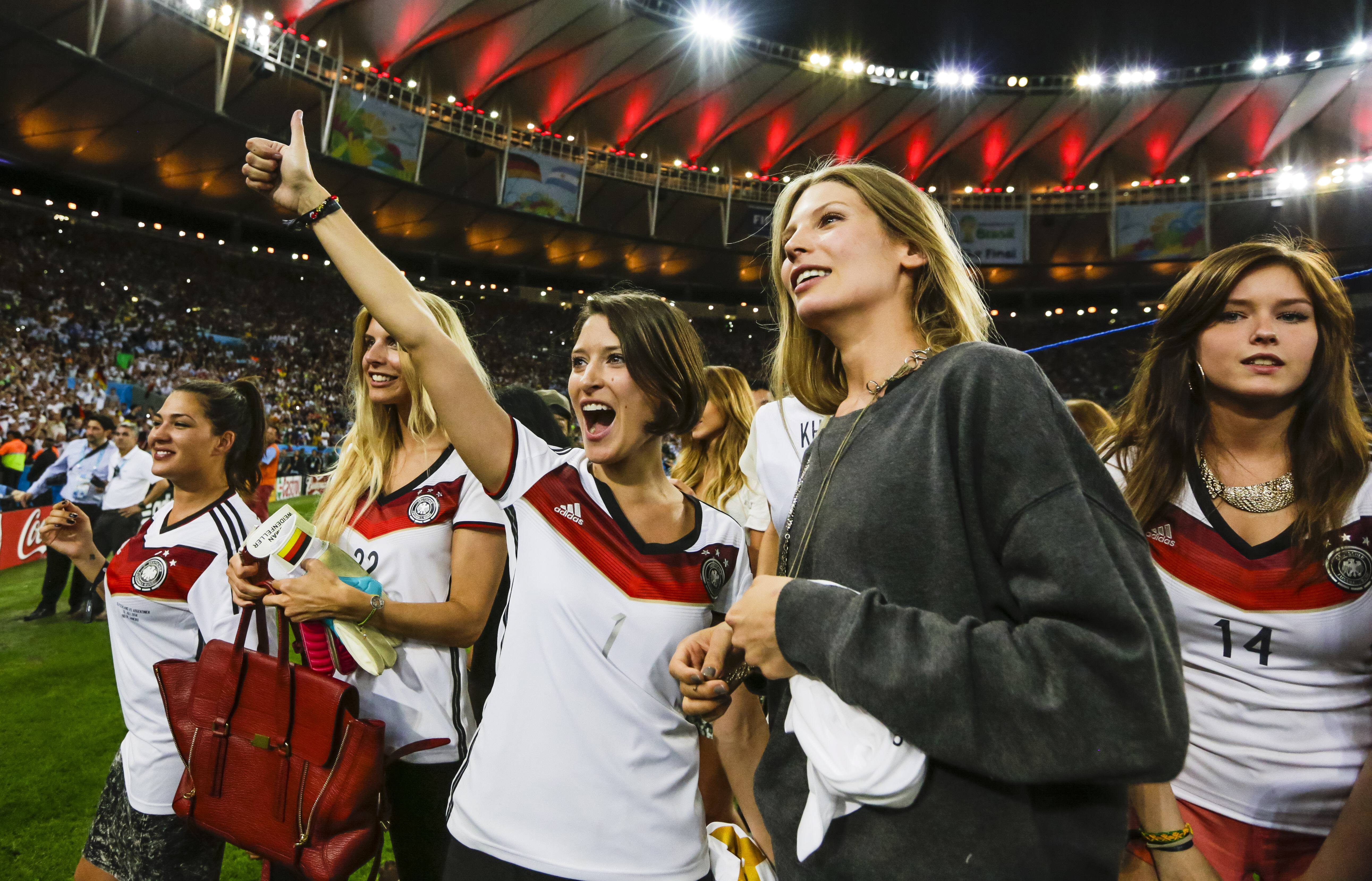 Aquí os mostramos a las Wags, Wife and girlfriends (mujeres y novias) de los futbolistas alemanes, que celebraron sobre el césped de Maracaná el triunfo en el Mundial de Brasil.