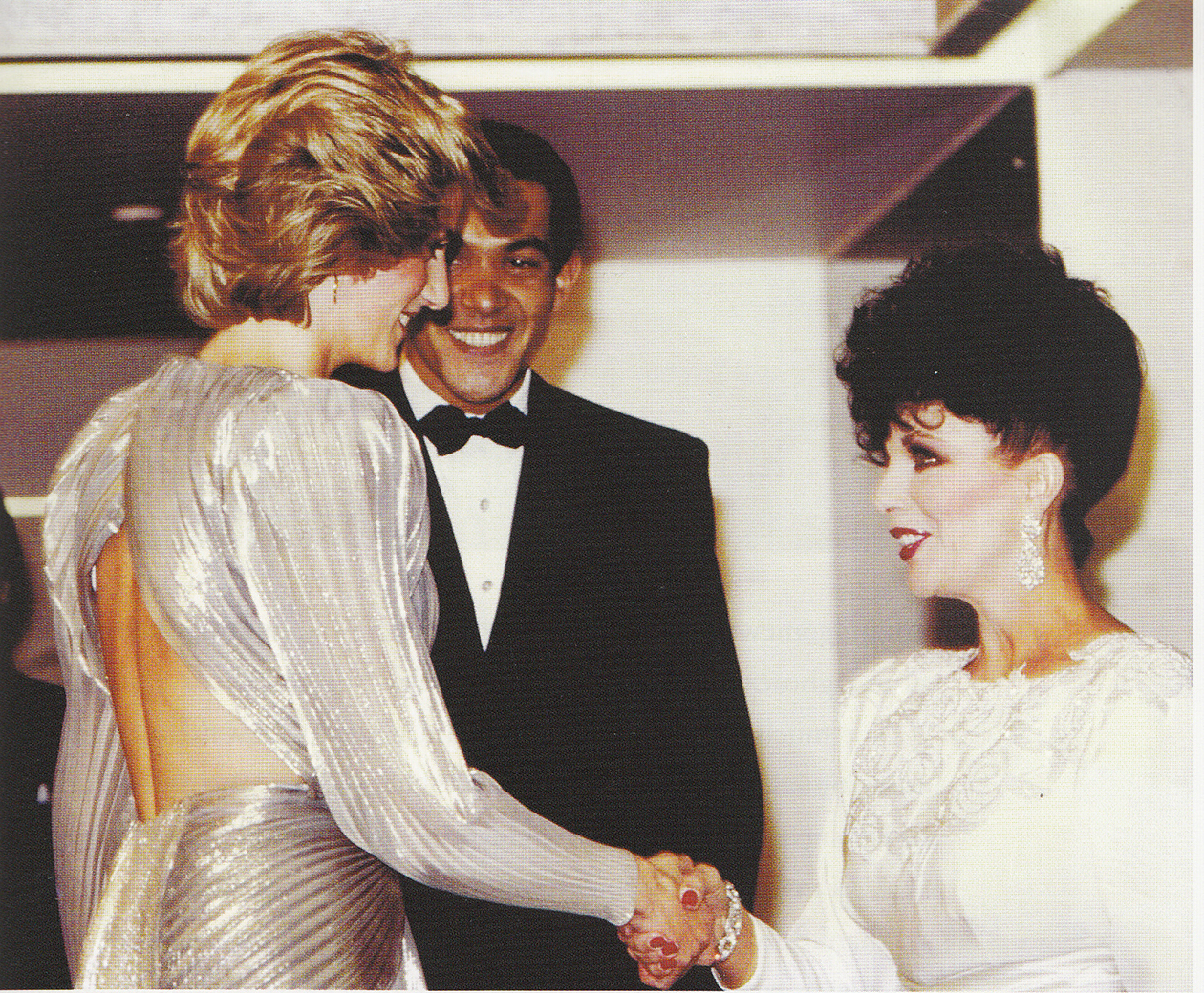 En pleno éxito de la serie de televisión "Dinastía", Joan brillaba con luz propia. La otra estrella del momento era Lady D. Ambas compartían hasta el mismo diseñador, Emanuel, muchos más acertado en esta ocasión de gala que en con el vestido de boda de la princesa.