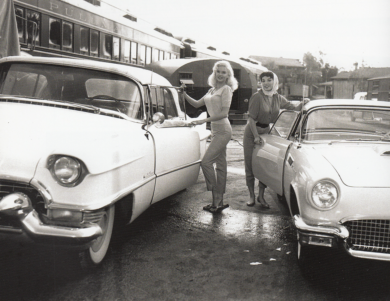 El libro se nutre de fotografías personales y de otras aparecidas en los medios de comunicación a lo largo de su carrera. Aquí, reciñen llegad a Hollywood desde su Inglaterra natal, junto a Jayne Mansfield.