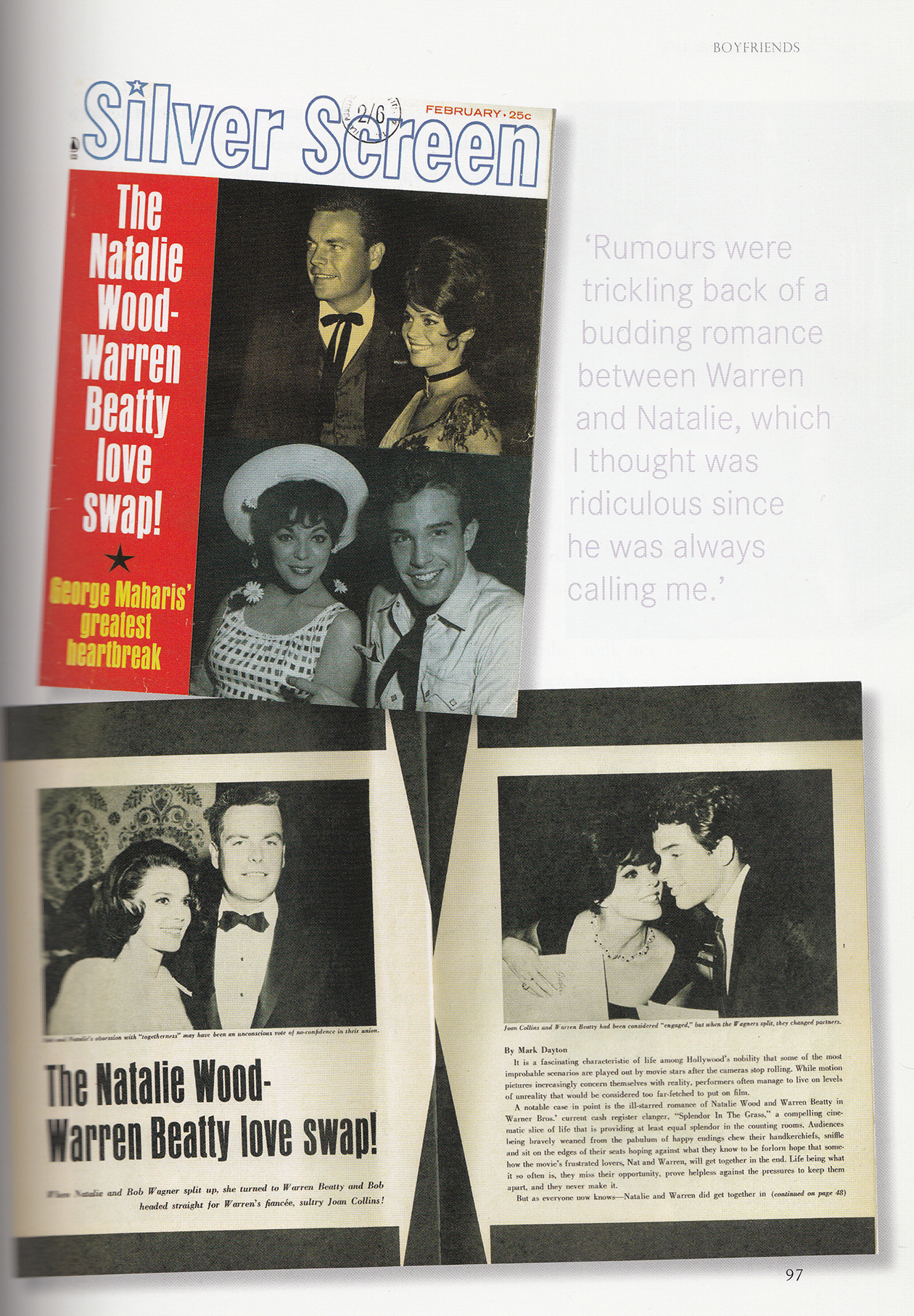 Pero Warren Beatty no sabía ser fiel y la prensa comenzó a publicar que Natalie Wood estaba engañando a su marido Robert Wagner con el joven actor. Joan Collins cuenta en el libro que entre las infidelidades y el exceso de sexualidad, estar con Beatty era agotador.