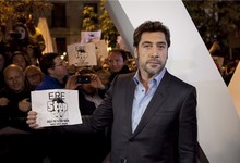 Javier Bardem con un cartel de ERE-Stop | Archivo