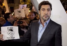 Javier Bardem con un cartel de ERE-Stop | Archivo