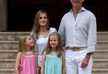 Los Reyes posaron junto con la princesa Leonor y la infanta Sofía ante los numerosos medios de comunicación en el Palacio de Marivent.