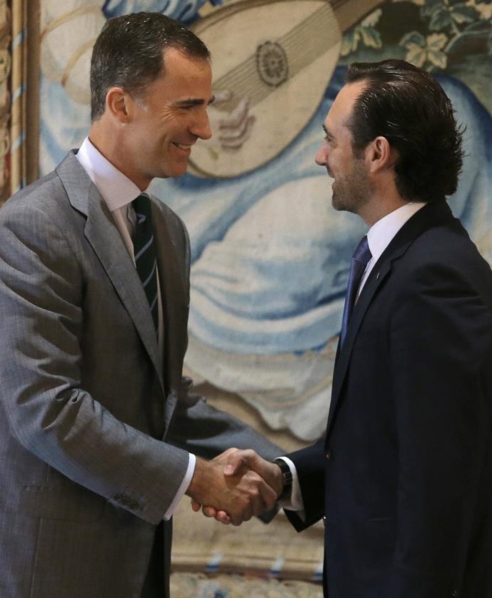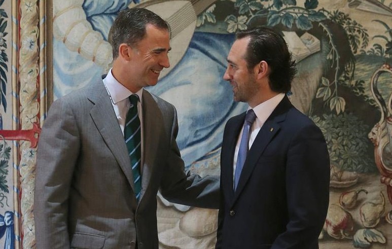 El Rey recibe al presidente de Baleares, José Ramón Bauza (d), dentro de las primeras audiencias de don Felipe en Palma.