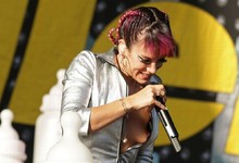 Lily Allen vestía un mono plateado. La chaqueta que portaba tenía la cremallera bajada hasta casi el ombligo. La imagen habla por sí sola.