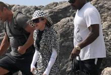 comentarios La cantante se dejó ver en Ibiza, a donde viajó con su hija, con un extraño vestido y una pamela negra. Ni para bañarse se quitó la ropa.