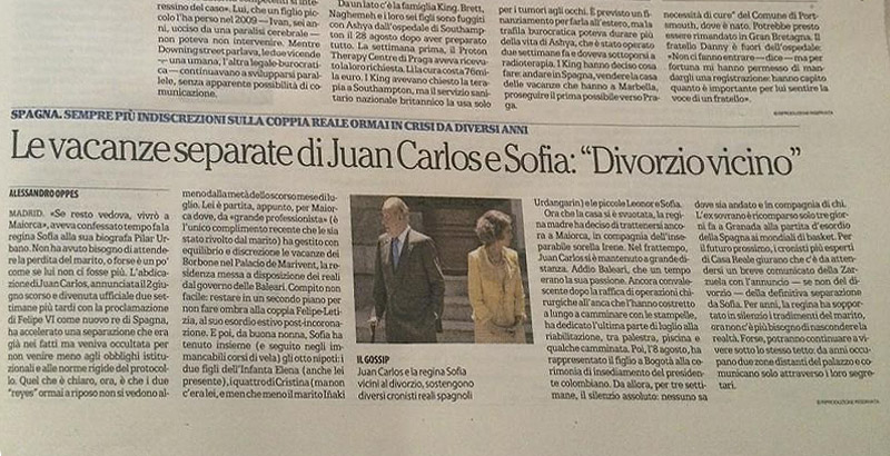 La Repubblica sostiene que se ha acelerado una separación que ya estaba en marcha, pero que había sido paralizada debido a la rigidez del protocolo y a las obligaciones institucionales. El periódico afirma que Juan Carlos I y Sofía no se ven desde julio y que este verano, mientras ella veraneó en Mallorca junto a su hermana Irene, el monarca se mantuvo a gran distancia.