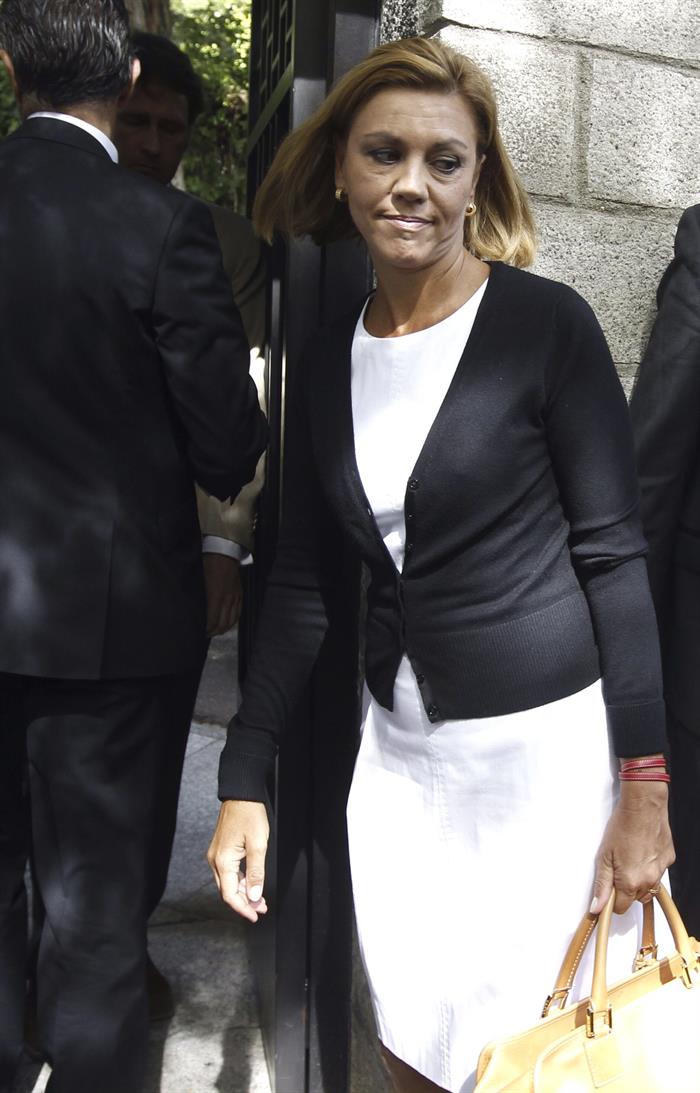 La presidenta de Castilla-La Mancha, María Dolores de Cospedal, a las puertas de la capilla ardiente.