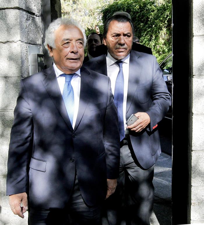 Antonio Romero (i) y Rafael Ruiz, intengrantes del dúo musical "Los del Río", a las puertas de la capilla ardiente del presidente de El Corte Inglés.