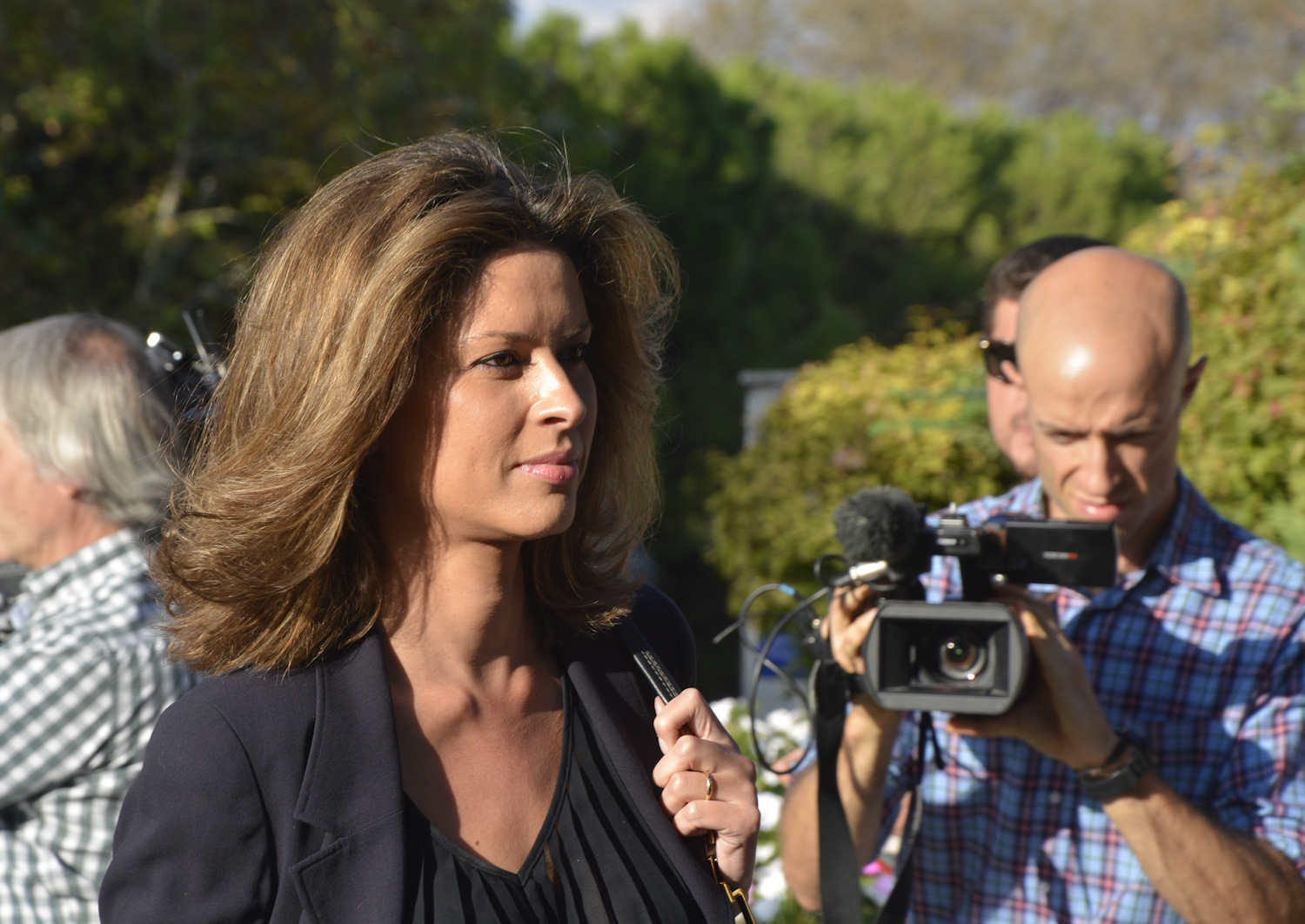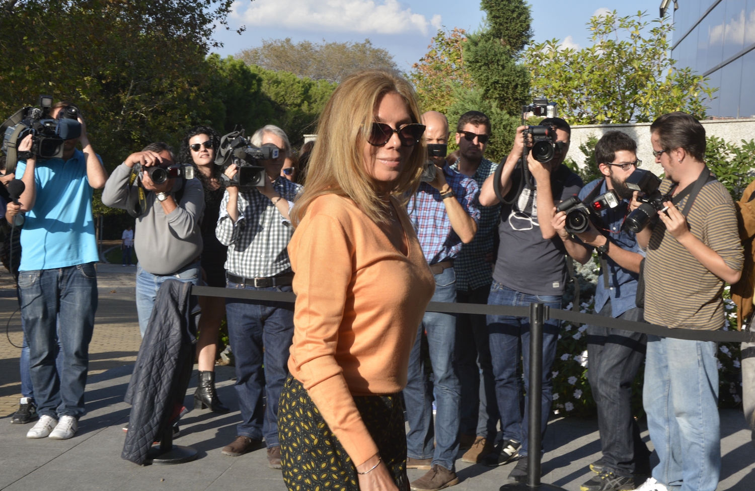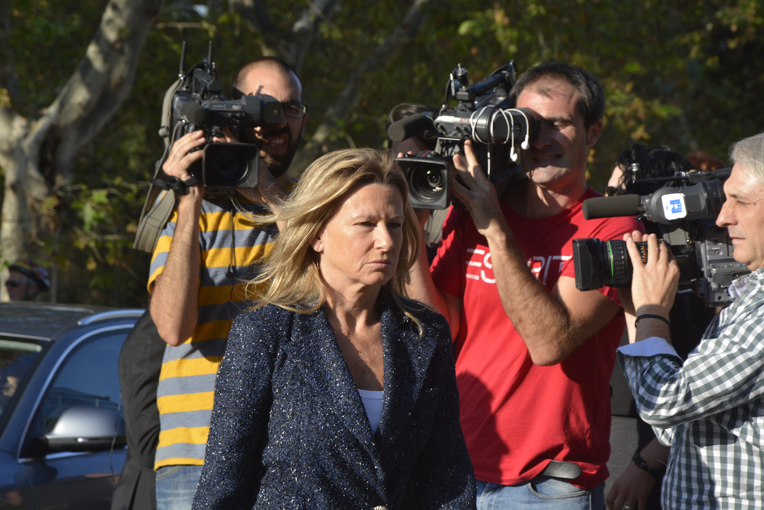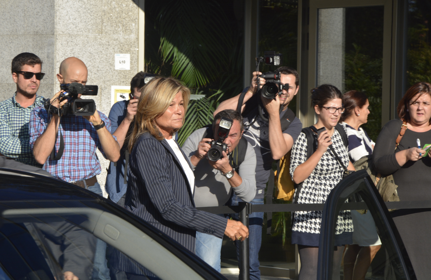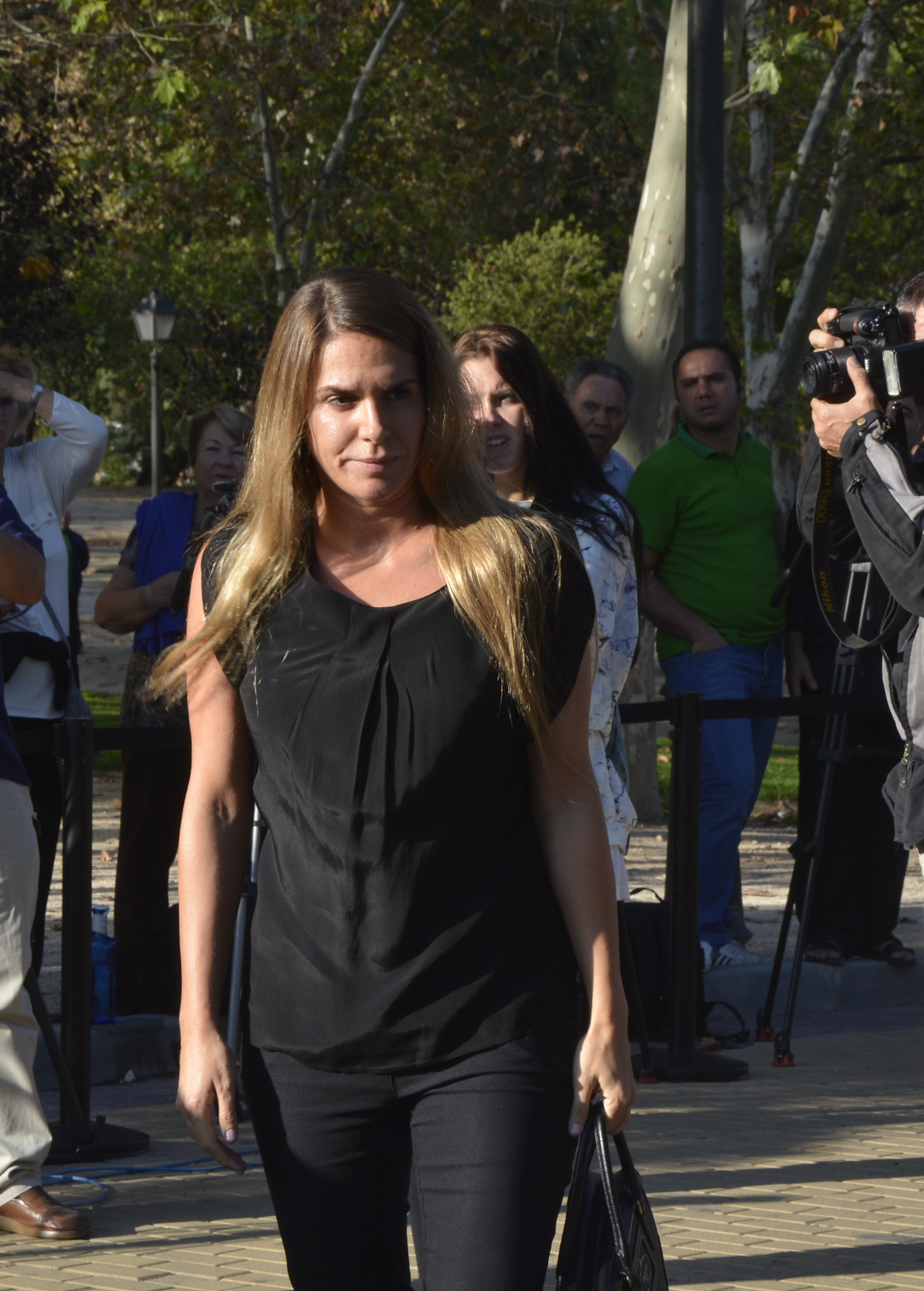 Cari Lapique saliendo del coche para entrar en el tanatorio.