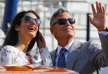 La joven que ha conseguido llevar al altar a George Clooney llevaba un vestido de encaje ajustado con una larguísima cola.