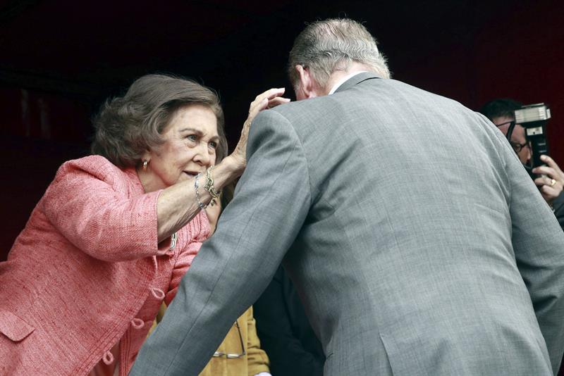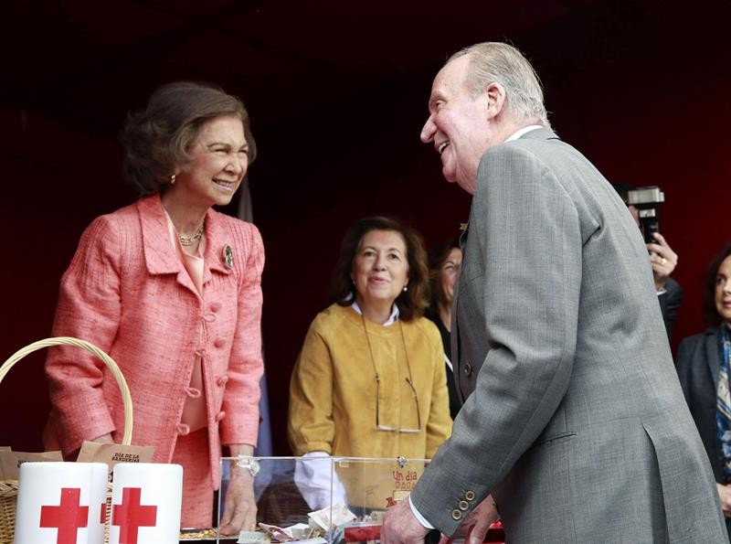 Primera imagen del rey Juan Carlos y de la reina Sofía desde su abdicación. Éste fue a visitar el stand de doña Sofía, que estaba en Sol.