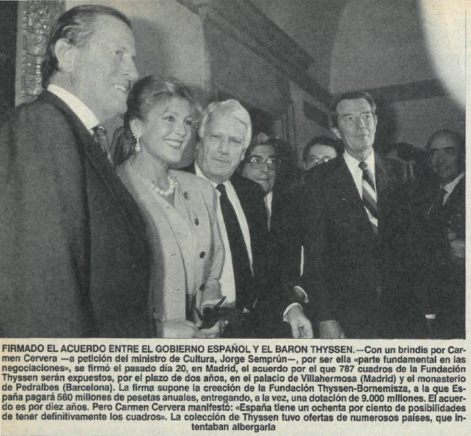 En 1988 el Museo Thyssen y la permanencia de la colección en España era una realidad. Todos los periódicos recogieron la noticia del acuerdo.