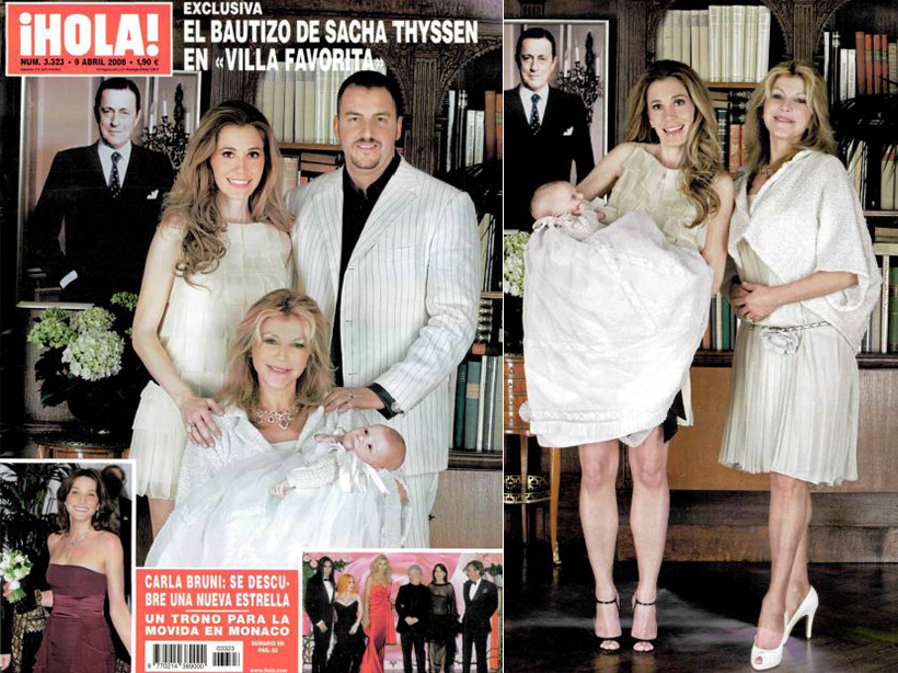 Seis años después de su muerte, el barón aparecía también posando en la exclusiva de ¡Hola! con el bautizo del hijo de Borja y Blanca. Eso sí, desde el retrato estratégicamente colocado para la foto familiar.