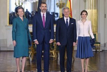 comentarios Los reyes Felipe y Matilde de Bélgica brindaron hoy en el Palacio Real de Bruselas una calurosa bienvenida a los Reyes de España.