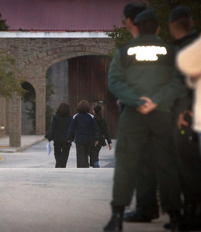 Funcionarios y guardias civiles colocaron vallas a las puertas de la prisión de Alcalá de Guadaira ante la previsible avalancha de periodistas y curiosos.