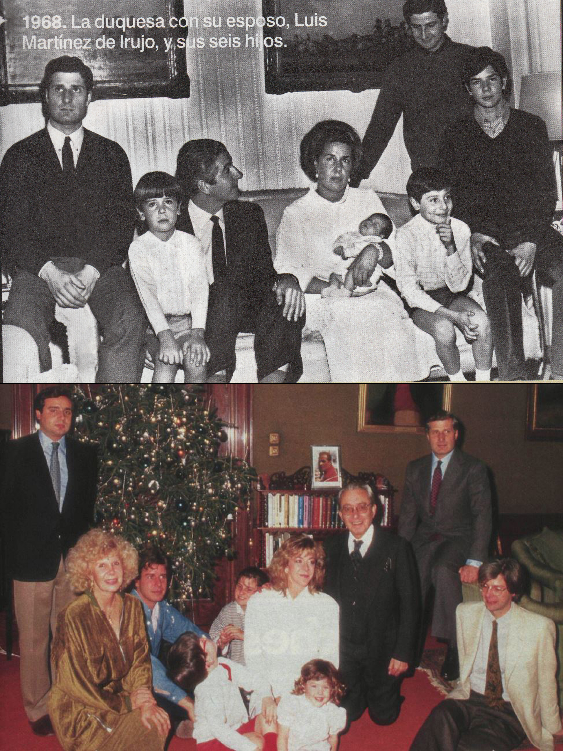 Lecturas mostraba en 1968 a la duquesa con su primer esposo y todos sus hijos. En 1987 la imagen se repetía con su segundo marido. Nunca tuvimos este posado familiar con el último hombre de su vida.