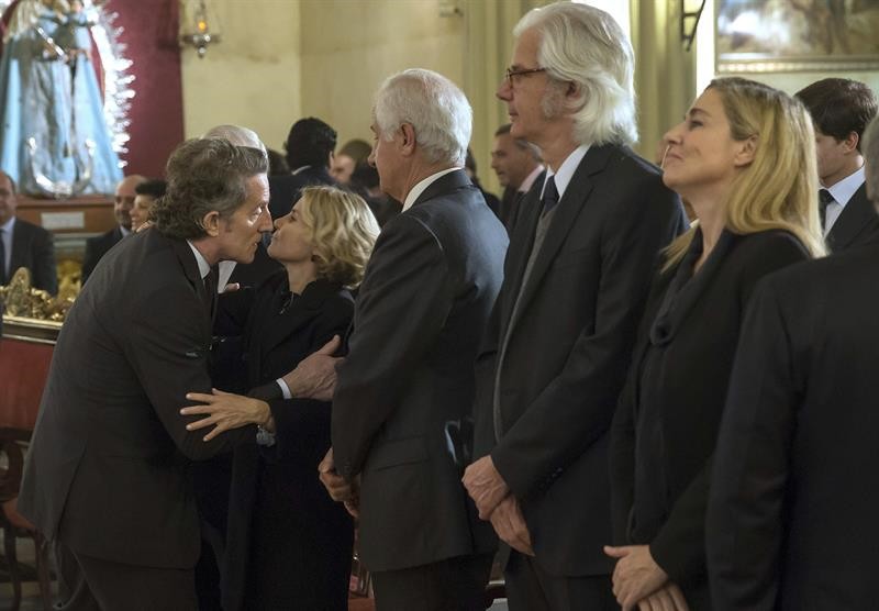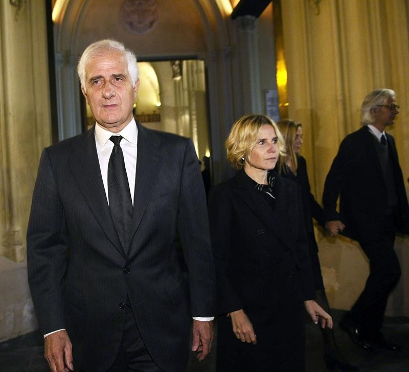 Con los ojos llenos de lágrimas y una notable tristeza, salían Alfonso y Eugenia Martínez de Irujo de la primera misa en sufragio por el alma de su madre.