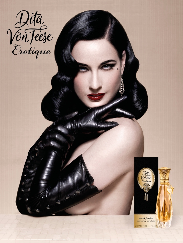 Por el contrario, Dita Von Teese intenta perpetuar su glamour aparentemente inalcanzable con una fragancia exótica de diseño impecable.