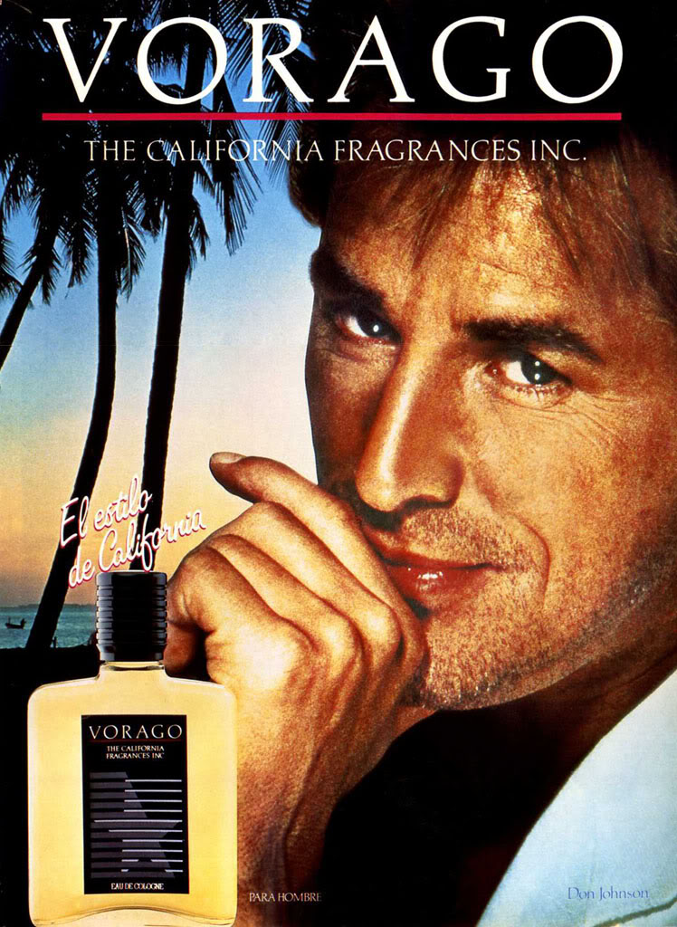 Las series de televisión compiten con el cine en la creación de iconos y personajes capaces de vender todo tipo de productos. Miami Vice fue otra de esas series de impacto y Don Johnson uno de los sex symbols del momento.