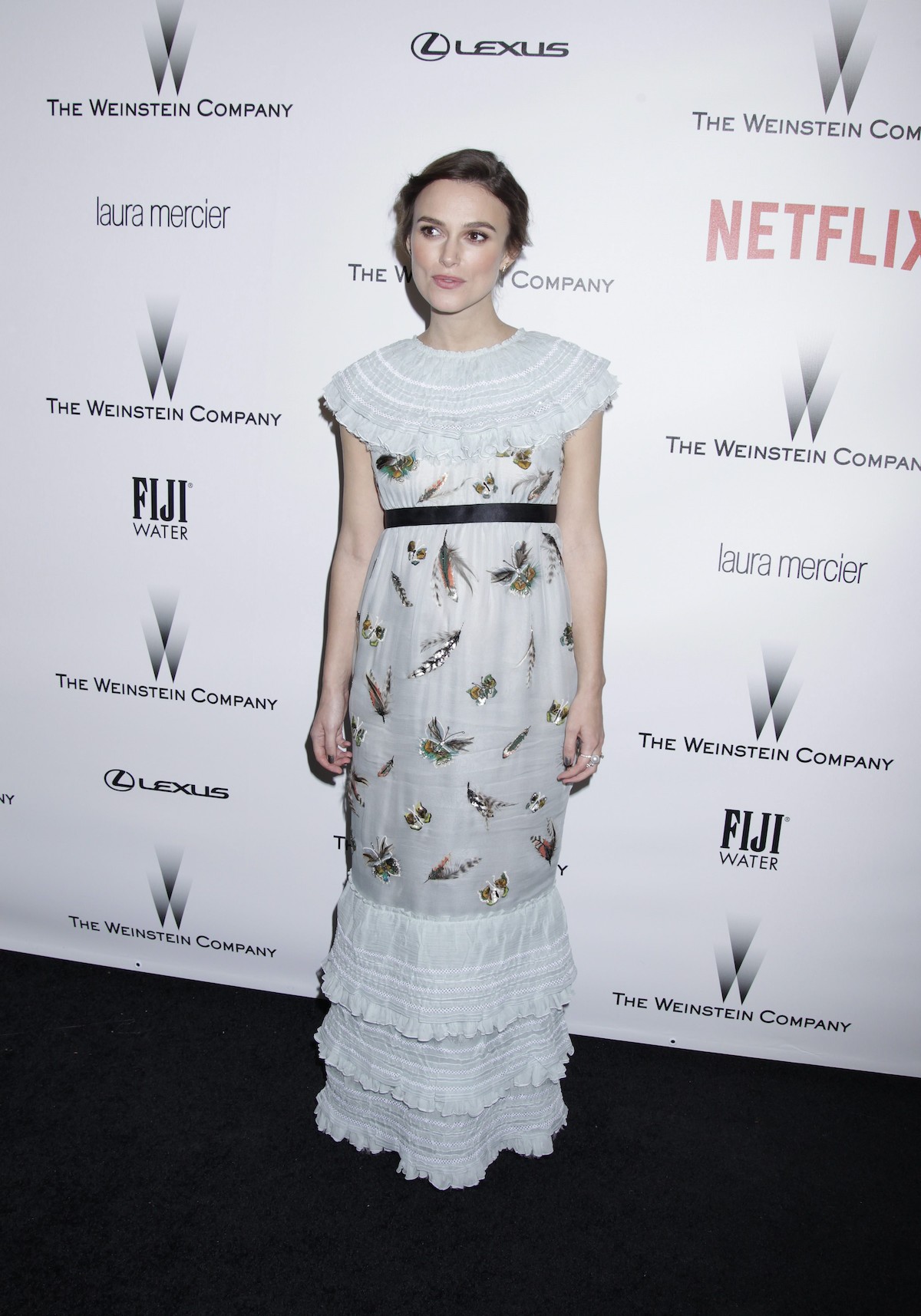 Una embarazada Keira Knightley no terminó de convencer con este singular vestido de Chanel con dibujos de mariposas y de volantes.