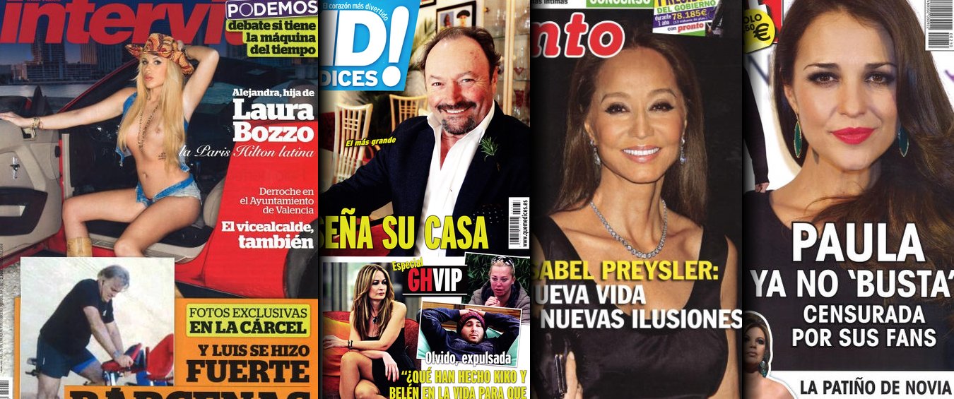 Portadas de las revistas Interviú, QMD, Pronto y Sálvame.