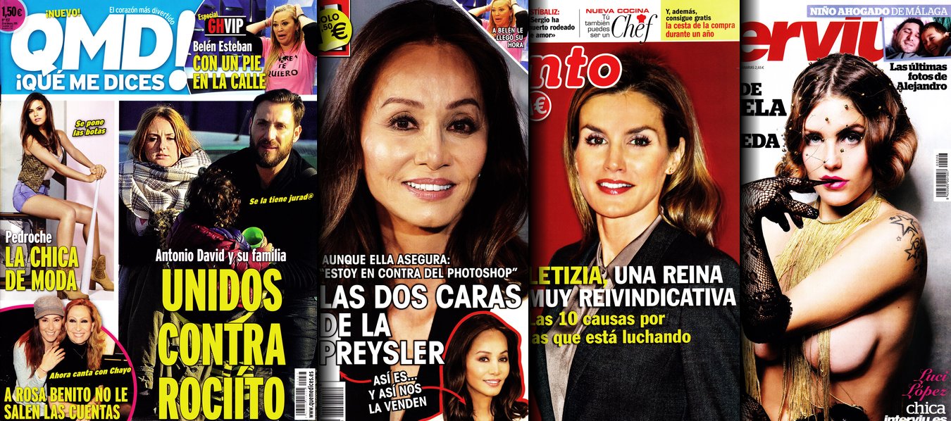 Portadas de las revistas QMD, Sálvame, Pronto e Interviú.